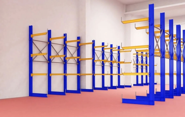 Cantilever Racking thường dùng trong các kho công nghiệp, công trình xây dựng, kho vật liệu.