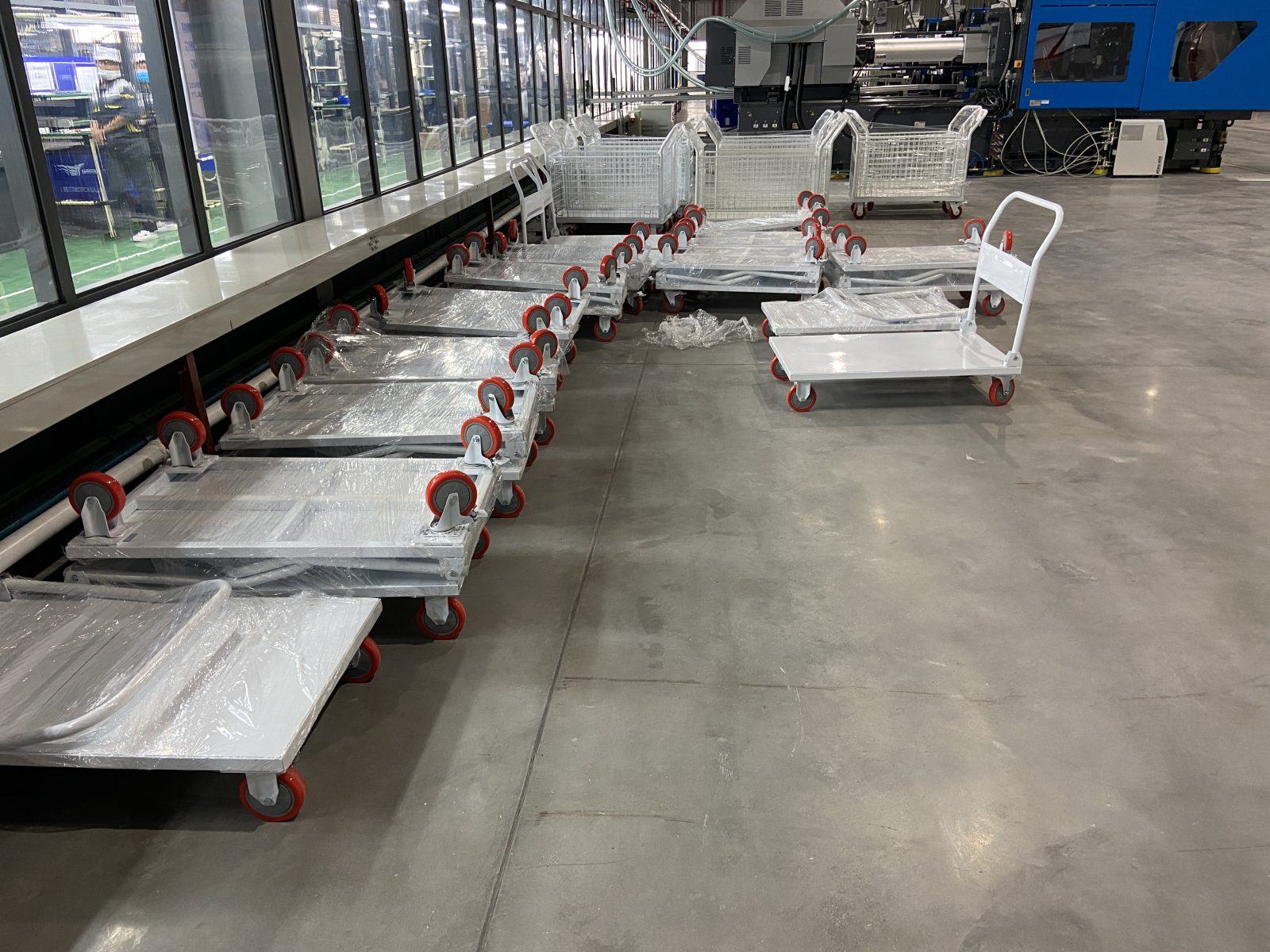 Xe đẩy giúp giảm sức lao động, nâng cao hiệu suất vận chuyển hàng hóa trong kho, siêu thị, nhà hàng, khách sạn và xưởng sản xuất.
